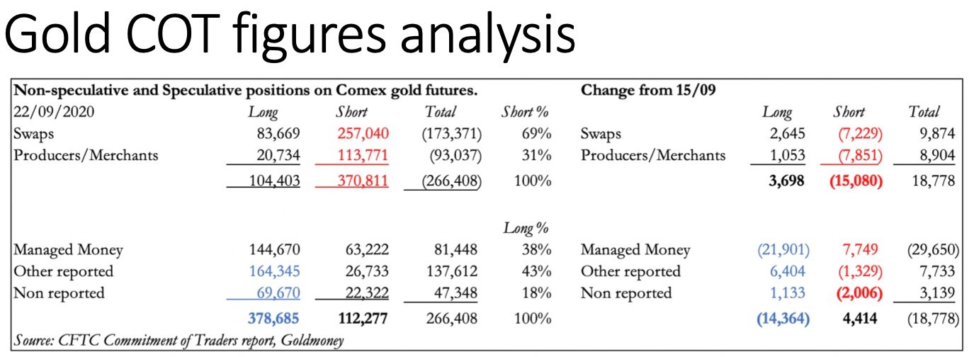 September 26 (King World News) – Alasdair Macleod: Yesterday’s release of Commitment of Traders’ figures for last Tuesday appear to reflect a repeat of the position in late-March, following which the gold price on Comex gapped up to massive premiums over spot. At that time, the coronavirus was blamed. Despite some countries facing a second wave, let’s see if with mines and refiners operating normally it happens yet again.