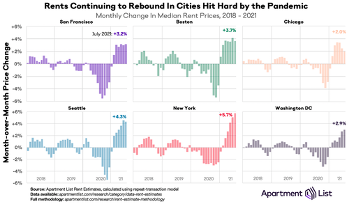 EDITOR NOTE: We are currently in the midst of the biggest housing shortage since just after World War II causing a rental frenzy like most of us have never seen before. There are several factors at play causing this shortage and the resulting skyrocketing rent prices. There is a massive housing sale bubble right now, forcing more people to look for rentals. Also, two years worth of young people, stalled by the pandemic, are now looking for their first apartments, and the eviction moratorium is keeping at least 6% of the usually available units off the market. This all adds up to rental hyperinflation, which is hurting the people who can least afford to be hurt financially. What is the Fed doing while all this is happening? They are continuing to bury their heads in the sand as they refuse to admit this travesty is happening. They are doing this because if they didn’t, they would be forced to stop the QE measures that are keeping the rich and powerful so rich and powerful during this global financial crisis.