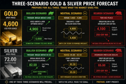 What’s going on with the spot price of gold and silver today? Either momentum returns, the “chop” continues, or downside pressure builds. So instead of guessing direction, let’s map it: three scenarios, three sets of triggers, and clear signals to watch next.